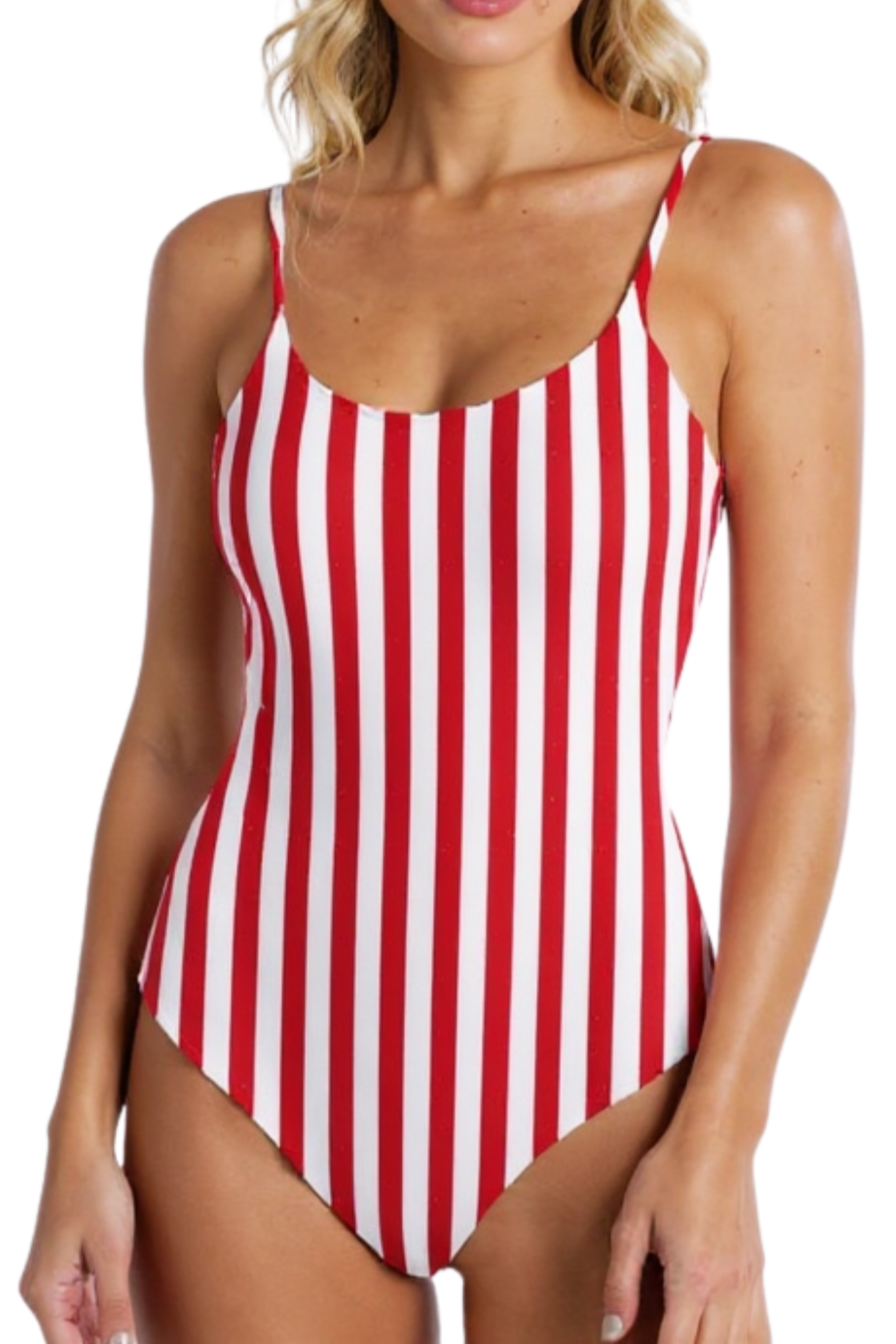 Traje de baño clásico con breteles finos.