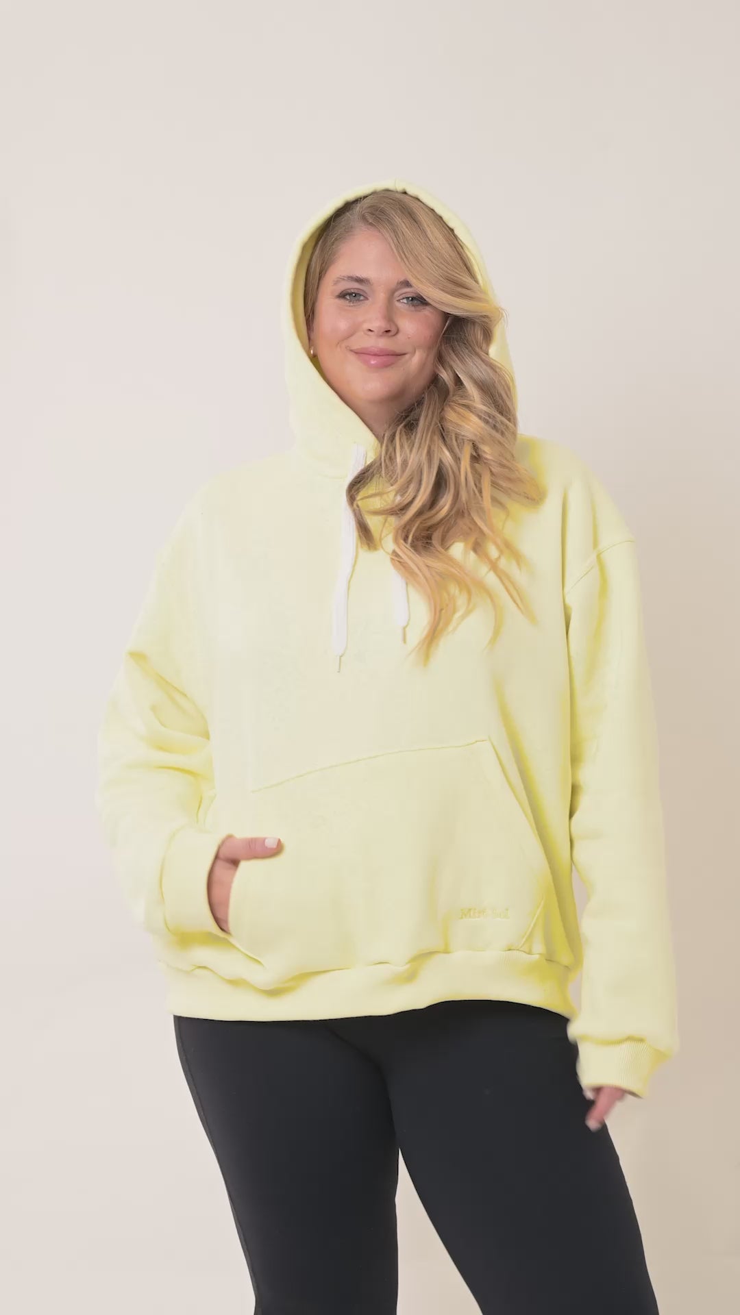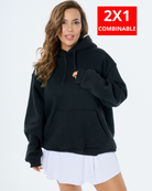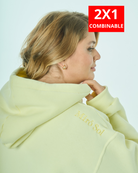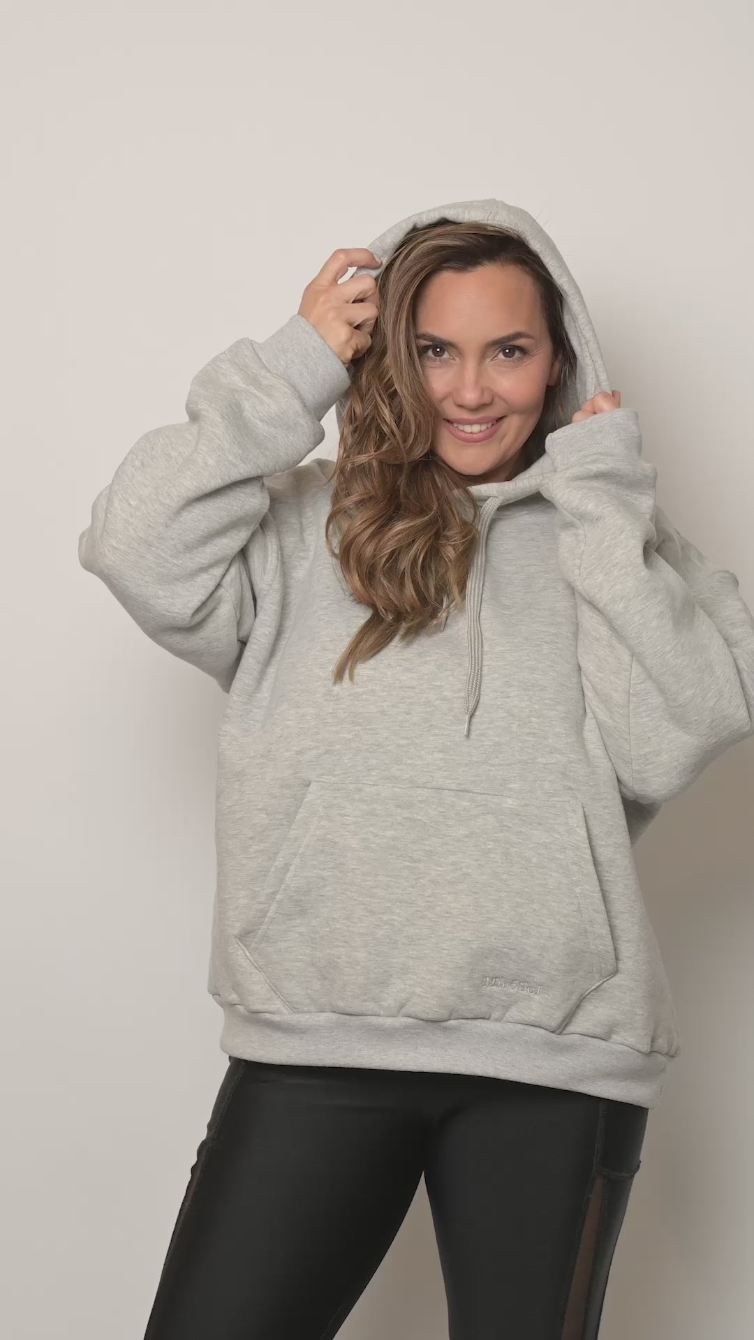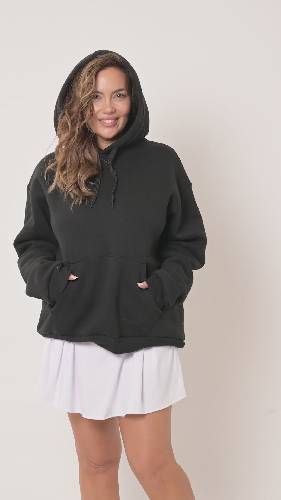 BUZO UNISEX OVERSIZE, con capucha, tiene el largo perfecto. Gran bolsillo central.