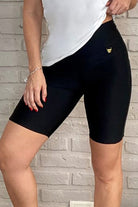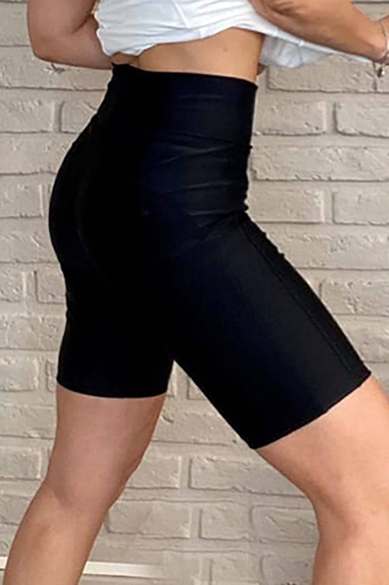Biker, cintura alta, máximo sostén. Recortes que estilizan la figura.