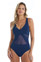 ¡NUEVO! Traje de Baño con escote en V y Transparencias. Su diseño geométrico estiliza la figura. Tiras cruzadas en la espalda.