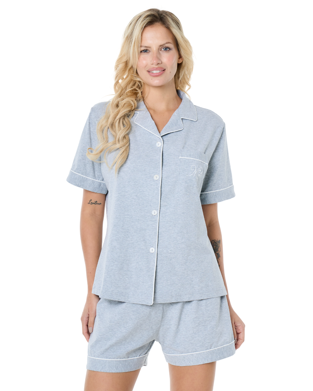 ¡NUEVO! Pijama camisero corto, en Cotton MiróSol. Confeccionado en una tela a base de seda vegetal, con spandex, suave, liviano y con una elasticidad ideal para brindar máximo confort. Camisa y short envivados, bolsillo bordado y botones con logo MiróSol.
