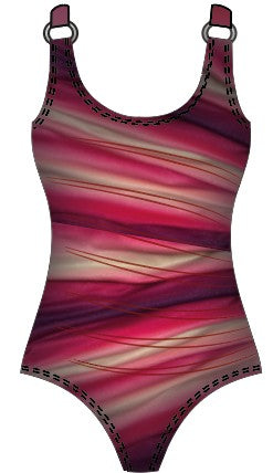 Traje de baño de una pieza, con diagonales de gran impacto visual. Con faja invisible que estiliza la silueta. Shaping cups removibles